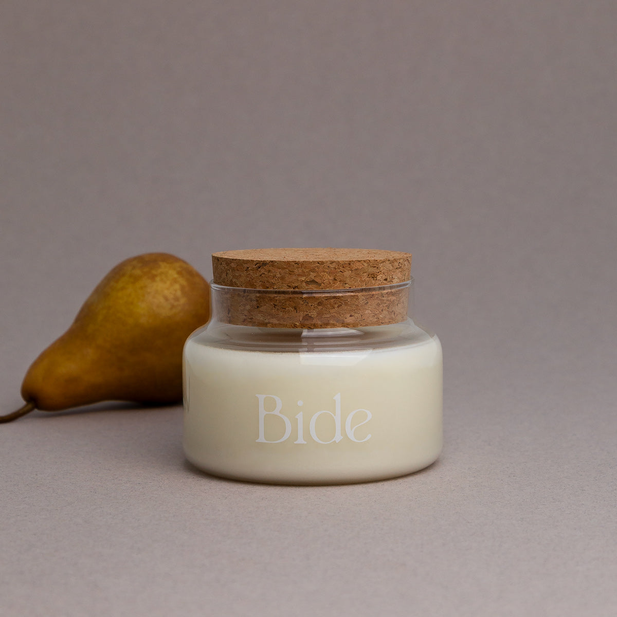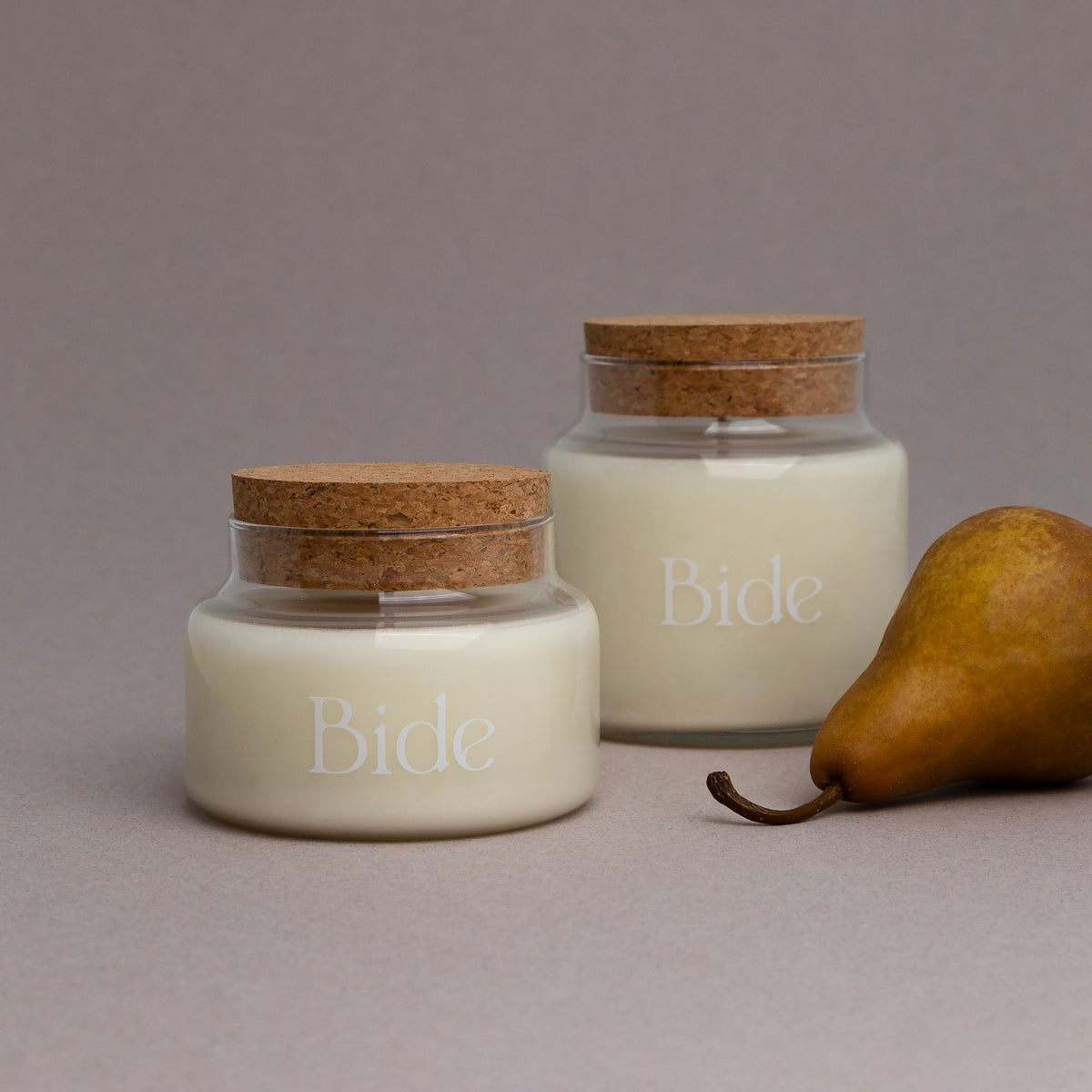 Bide candles are individually hand poured in reusable, glass vessels using 100% natural soy wax with unbleached, zinc and lead free cotton wicks.