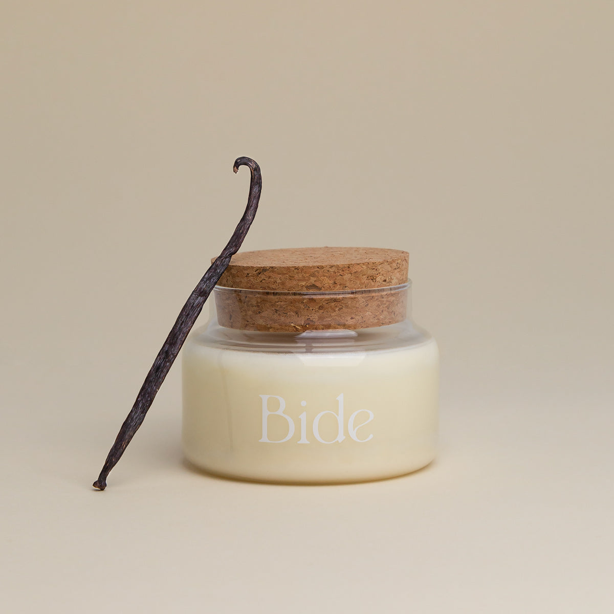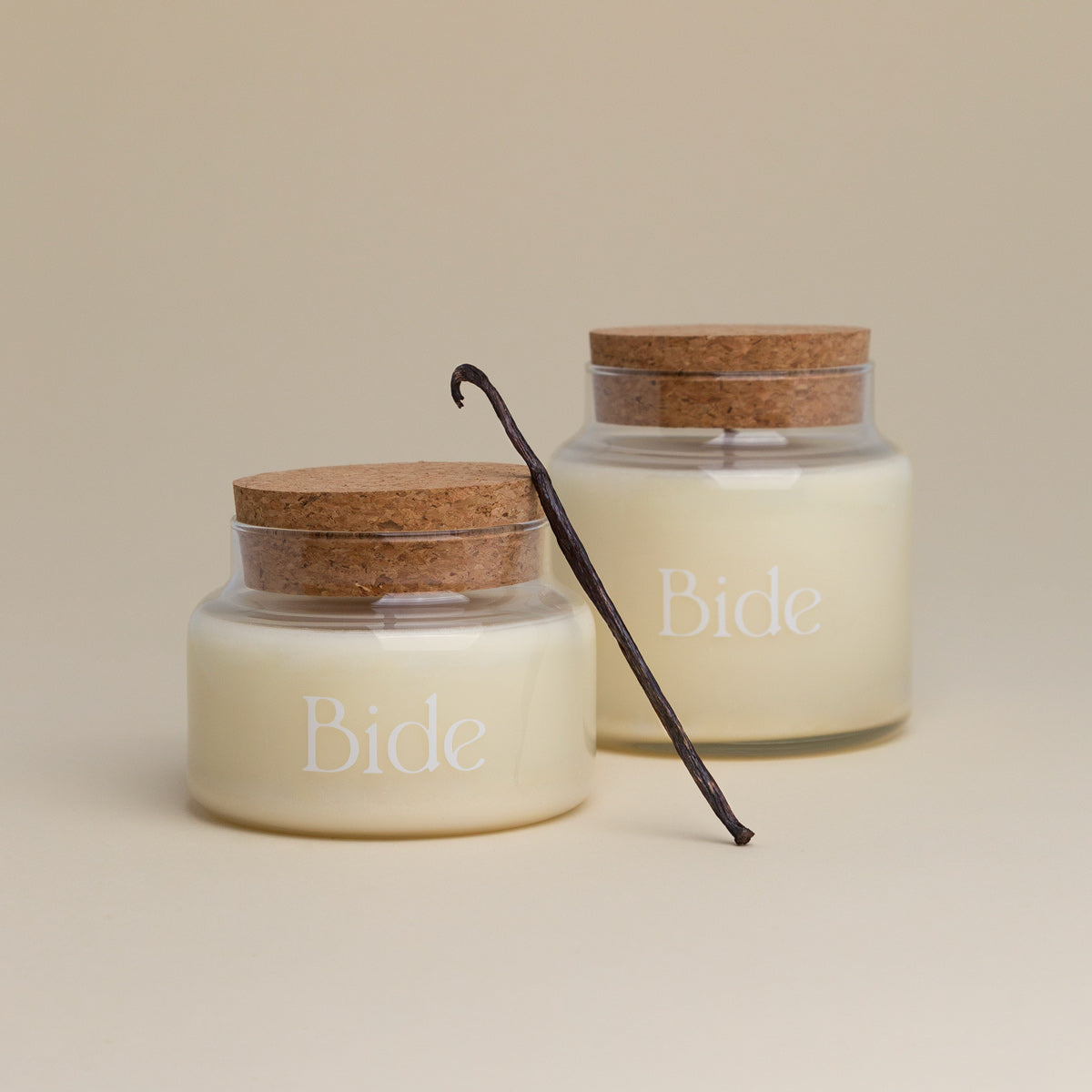 Bide candles are individually hand poured in reusable, glass vessels using 100% natural soy wax with unbleached, zinc and lead free cotton wicks.